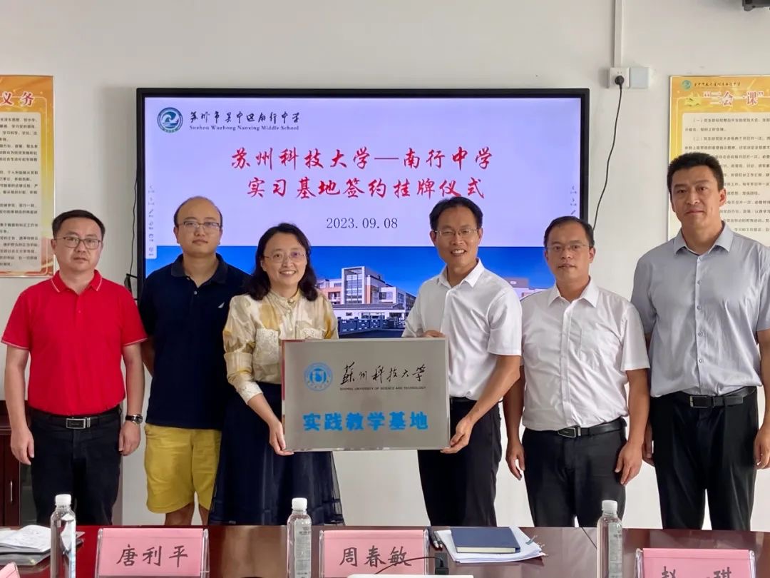 与吴中区南行中学举行“共建教育实习、见习基地”签约挂牌仪式。吴中区南行中学党支部书记、校长周春敏、副书记蒋洁、副校长张炎石,皇冠体育app