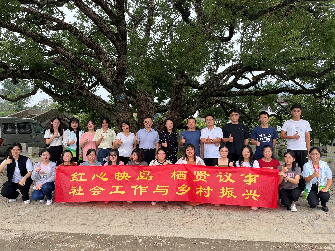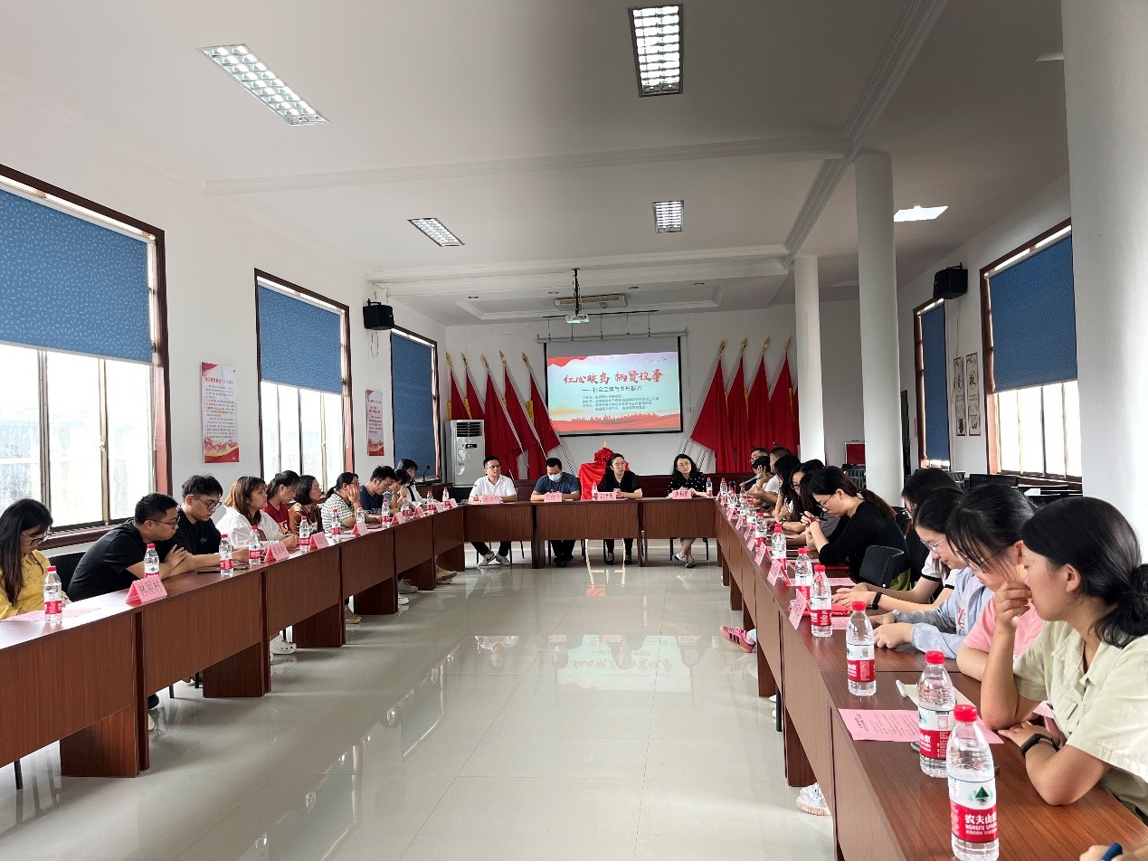 副院长唐利平,金庭镇文体中心、旅游集团、社会工作站、各村党支部书记及我校社会工作专业部分师生代表出席。
