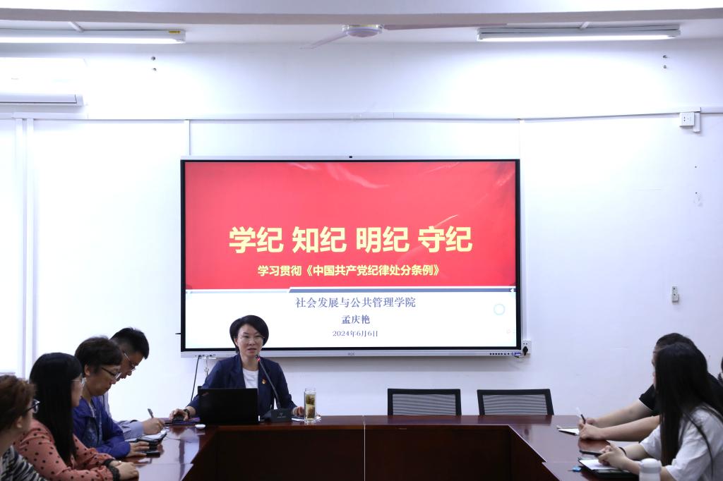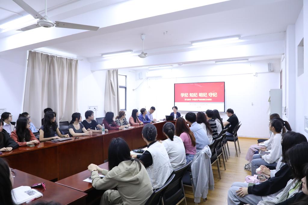 党委书记孟庆艳为学院师生党员讲授了题为“学纪、知纪、明纪、守纪——学习贯彻《中国共产党纪律处分条例》”的专题党课。