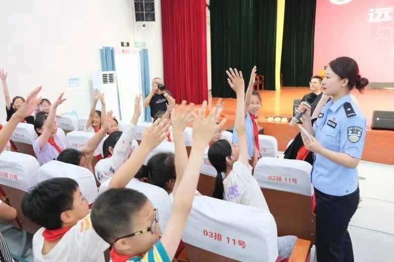 集中学习后,团队成员同步在社区、学校等地开展线下禁毒宣讲活动。在江苏省南通市海安市孙庄街道办事处,团队成员卢瑶邀请了江苏省海安市禁毒办李警官到孙庄社区组织开展青少年禁毒宣传教育活动,并组织青少年安全、有序入场,协助孙庄街道、海安禁毒办开展“禁毒小课堂”活动,加强青少年禁毒宣传教育。