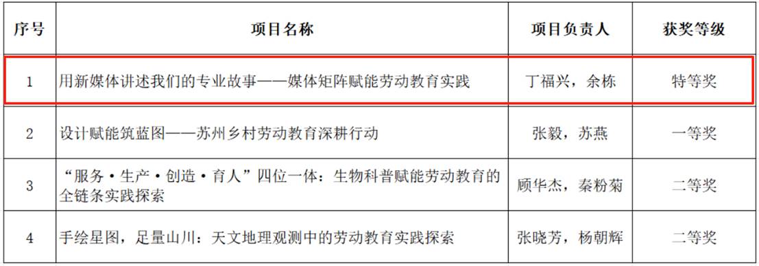 丁福兴和余栋两位老师共同承担的《用新媒体讲述我们的专业故事--媒体矩阵赋能劳动教育实践》项目,从众多项目中脱颖而出,荣获大赛特等奖。