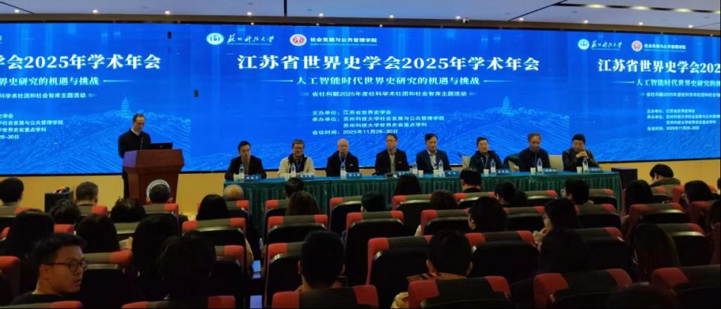 2025年11月28-30日,江苏省世界史学会主办,苏州科技大学社会发展与公共管理学院、苏州科技大学世界史省重点学科承办,以“人工智能时代世界史研究的机遇与挑战”为主题的“2025年江苏省世界史学会第28届学术年会”在苏州科技大学石湖校区隆重举行。来自南京大学、江苏省社会科学院、南京师范大学、江苏师范大学、扬州大学、苏州大学、南通大学等省内多所高校、科研院所、东道主苏州科技大学以及省内多所初高中等共96位学者齐聚本届年会,包括20多位省内多所高校博士、硕士研究生在内,还吸引了省外高校青年学人、高中教师的参会。