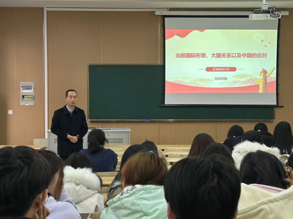 王本立以“当前国际形势、大国关系以及中国的应对”为主题,勉励在场师生,要持续关注国际动态,提升战略思维和历史思维,深刻理解国家发展战略与外交方针,将个人发展融入国家发展和民族复兴的伟大进程,在波澜壮阔的时代洪流中找准定位,贡献力量。