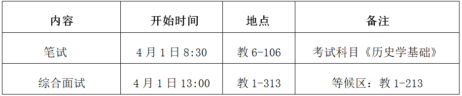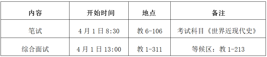 b、中国史专业复试具体安排如下: