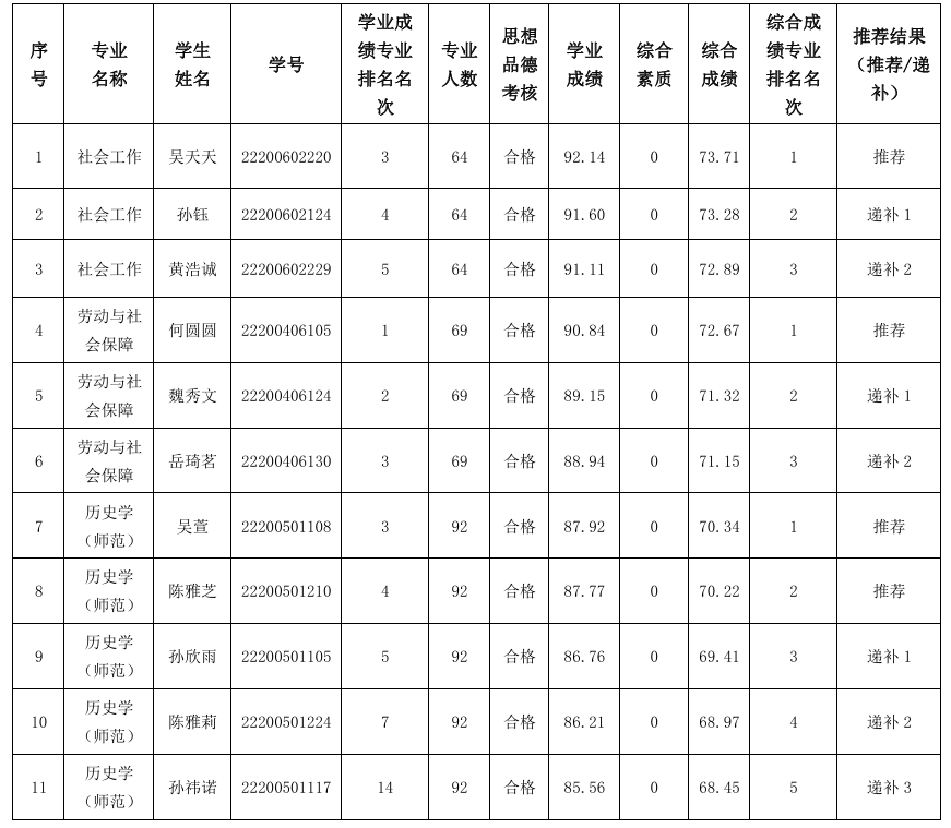 推荐2026年优秀应届本科毕业生免试攻读研究生工作细则》,经学生本人申请,学院推免生遴选工作小组评审,现将学院2026届拟推荐免试攻读研究生结果公示如下:
