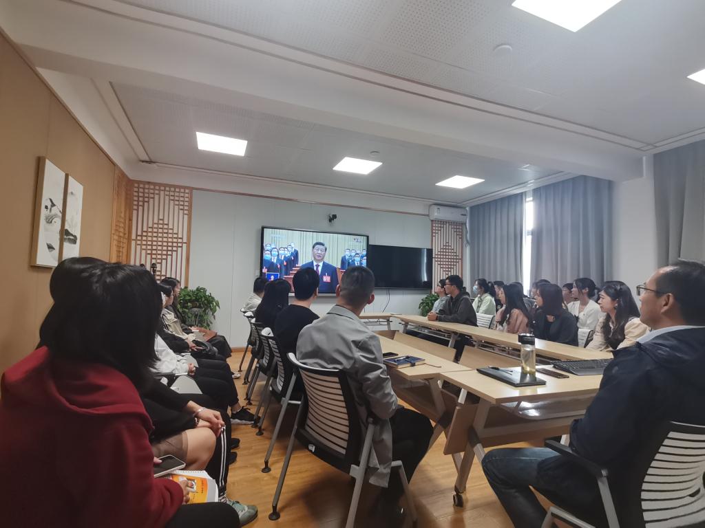 最后,研究生和本科生党支部的学生党员们纷纷热议:“立足机遇看挑战,立足成就看成因。回顾过往十年的辉煌成就,面对新时代的种种挑战,我们青年党员要在这一新征程新起点上始终谦虚谨慎,团结一致,并不懈奋斗。”“习总书记说青年强则国强,作为新时代的青年党员,我们要始终坚持党的领导,坚定中国化马克思主义不动摇,怀抱梦想,脚踏实地,立志做有理想敢担当能吃苦肯奋斗的新时代青年。”