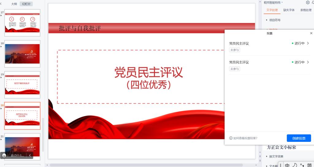 然后,进入会议第三部分:批评和自我批评。每位党员依次对他人与自身进行批评与自我批评。之后,每位党员填写《党支部党员民主测评表》,按照“优秀”、“合格”、“基本合格”、“不合格”进行民主评议。