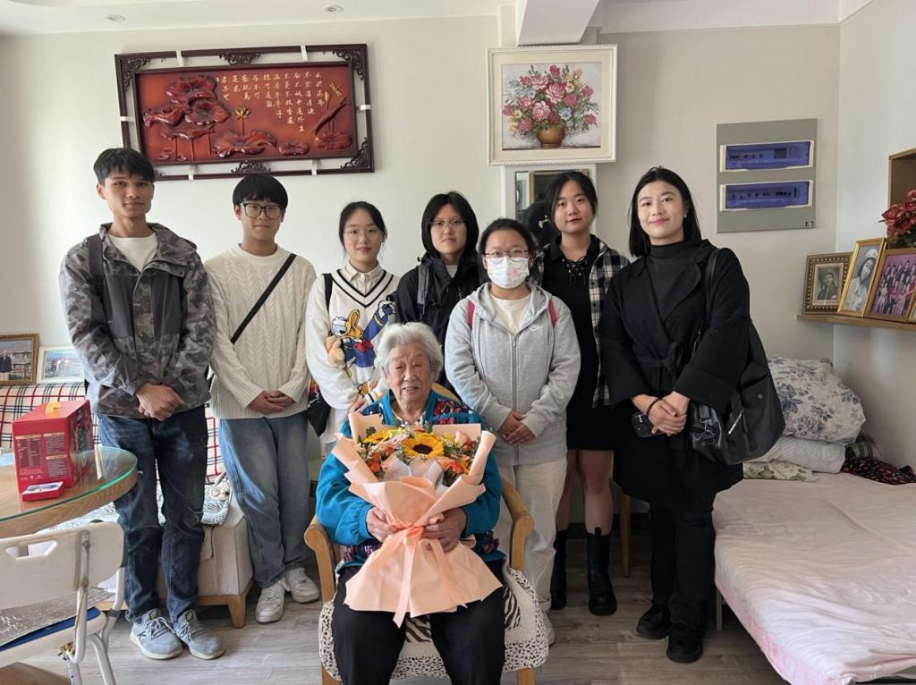 全体师生在社区负责人的带领下参观了瑞颐康养社区,了解社区构成、助老设施、入住老人情况并分为四组看望抗美援朝老战士。